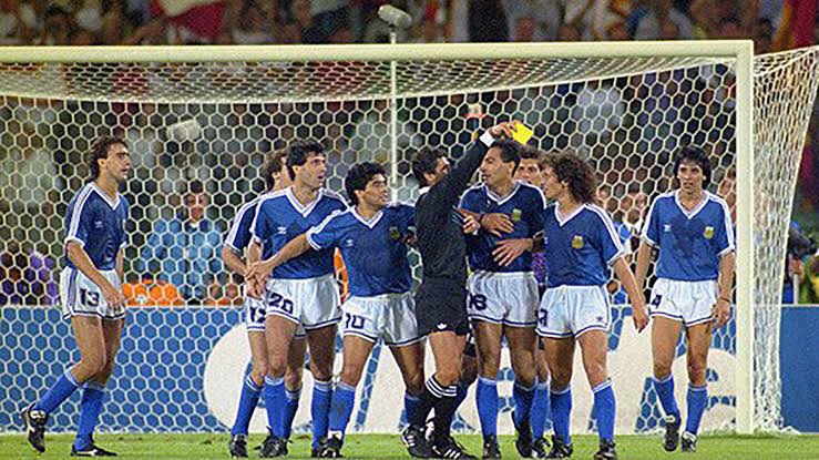 84’¡PENAL PARA ALEMANIA! , foul de Sensini sobre Völler. El árbitro Edgardo Codesal marca penal en favor de Alemania tras revisión