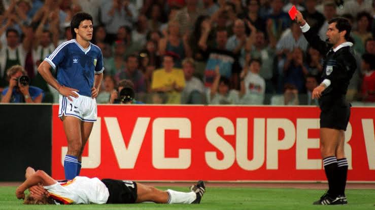 86’–87’ Apenas dos minutos después, Gustavo Dezotti es expulsado con segunda amarilla (roja), tras una durísima entrada sobre Jürgen Kohler. Argentina queda con 9 jugadores.